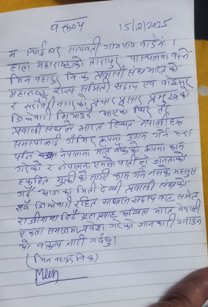 तारापुर । प्रवासी नेपाली संघ महाराष्ट्र राज्य समिति सदस्य मिन बहादुर बिक एवम् सरौली नगर समिति सदस्य सुर्य भण्डारीले सो संगठन परित्याग गरि मूल प्रवाह अखिल भारत नेपाली एकता समाजमा प्रवेश गरेको घोषणा गर्नुभएको छ । वहाँहरुले एक संयुक्त वक्तव्य जारि गरि सो जानकारी गराउनु भएको हो ।