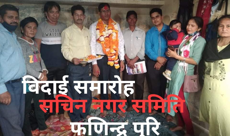 सुरत । मूल प्रवाह अखिल भारत नेपाली एकता समाज सचिन नगर समितिका जेहन्दार कर्मठ नगर कार्यकर्ता नगर सदस्य फणीन्द्र पूरीलाई विदाई कार्यक्रम गरेर स्वदेशमा राष्ट्रिय जन्मोर्चा नजिक रहेर काम गर्न शुभ कामना बधाई दिँदै नगर अध्यक्ष सबिना कुँवरको अध्यक्षता र नबिन गिरीको सञ्चालन, प्रमुख अतिथि मूल प्रवाह अखिल भारत नेपाली एकता समाज केन्द्रीय पार्षद बिन बहादुर रेग्मी, पश्चिम भारत क्षेत्रीय उपसचिव हरि कुमार गिरी र नगर सल्लाहकार करन केसीले आसन ग्रहण गर्नुभएको थियो ।