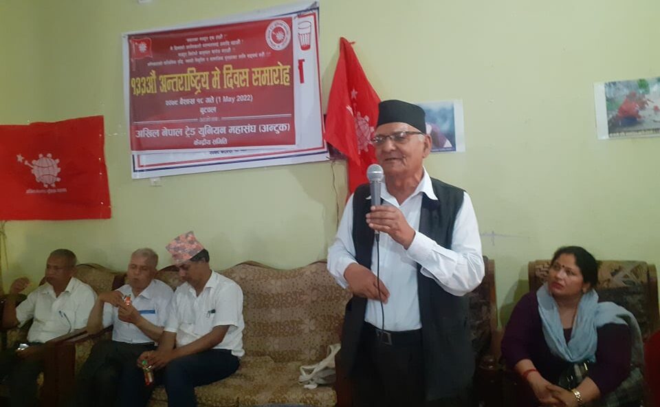 बुटवल,बैशाख१८गते।संसारका मजदुर एक हौ औं भन्ने आह्वानका साथ अखिल नेपाल ट्रेड युनियन महासंघ (अन्टुक) रुपन्देहीले १३३ औं अन्तर्राष्टिय« मे दिवस मनाएको छ। अन्टुकले रुपन्देहीको बुटवलस्थित राष्ट्रिय जनमोर्चाको कार्यालयमा मजदुुुुुुुुर दिवस मनाएको हो।