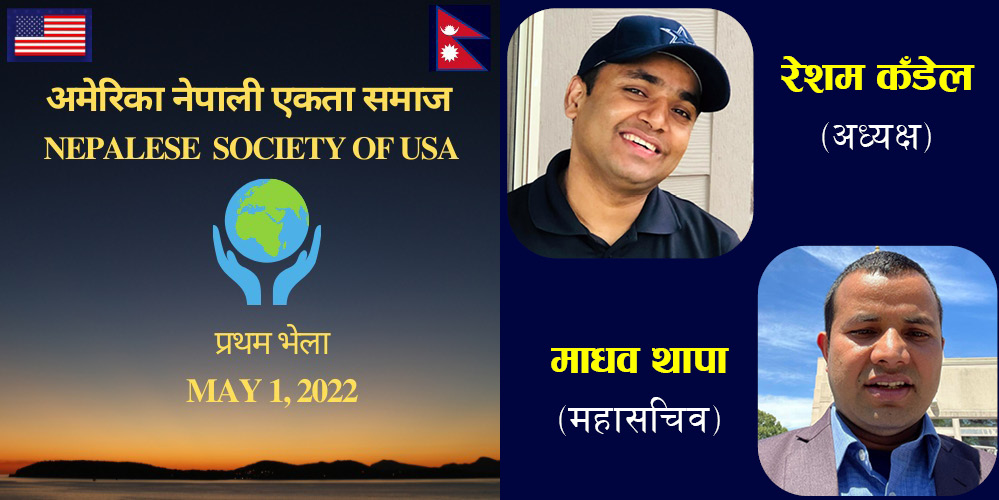 काठमाडौँ । अमेरिका नेपाली एकता समाजको प्रथम भेला सम्पन्न भएको छ । राष्ट्रिय जनमोर्चा उपाध्यक्ष, प्रवक्ता तथा प्रतिनिधि सभा सांसद दुर्गा पौडेलको प्रमुख आतिथ्यमा २०७९ वैशाख १८ गते भर्चुअल माध्यमबाट भेला सम्पन्न भएको हो ।