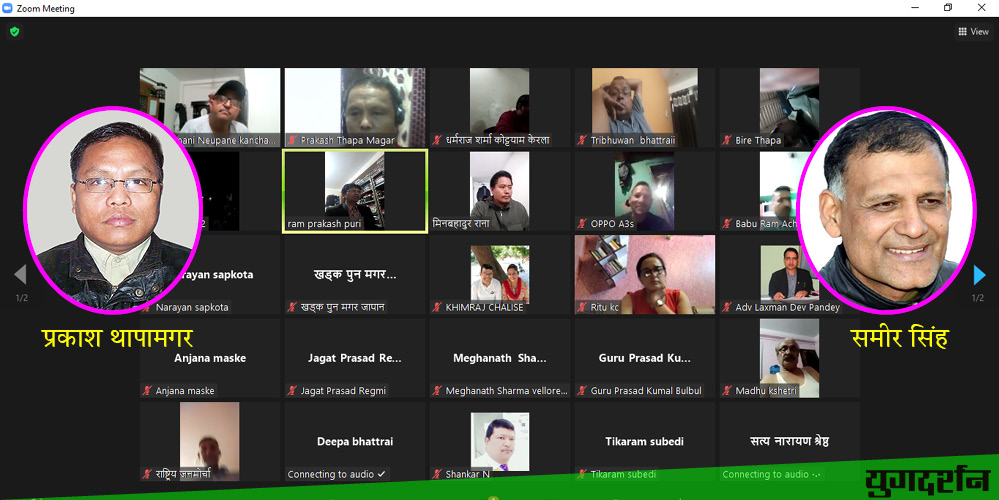 मीन रानाको अध्यक्षता, प्रकाश थापामगरको सञ्चालन तथा बाबुराम आचार्यको स्वागत मन्तव्यका साथ अघि बढेको सो भेलाद्वारा निर्वाचित केन्द्रीय समितिलाई अखिल नेपाल कानुन व्यवसायी सङ्घका महासचिव लक्ष्मणदेव पाण्डे र मूल प्रवाह अखिल भारत नेपाली एकता समाजका केन्द्रीय सचिव त्रिभुवन भट्टराई बधाई दिनुभएको थियो ।
