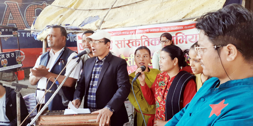 १) नेपालको प्रगतिशील सांस्कृतिक आन्दोलनमा सशक्त भूमिका निभाउँदै आइरहेको रक्तिम सांस्कृतिक अभियान नेपालको प्रगतिशील तथा जनवादी सांस्कृतिक आन्दोलनको क्षेत्रमा एक लोकप्रिय सांस्कृतिक संगठन हो । यो संगठनले आफ्नो स्थापना कालदेखि नै सामन्तवादी, साम्राज्यवादी तथा पुँजीवादी छाडा संस्कृतिको विरुद्धमा निरन्तर संघर्ष गर्दै आइरहेको छ । देशमा भएका हरेक राजनैतिक घटना, परिघटना र परिवर्तनहरुमा प्रगतिशील गीत, संगीतको क्षेत्रबाट रक्तिमले पुर्याएको योगदान यहाँहरु सबैलाई ज्ञात भएकै विषय हो ।