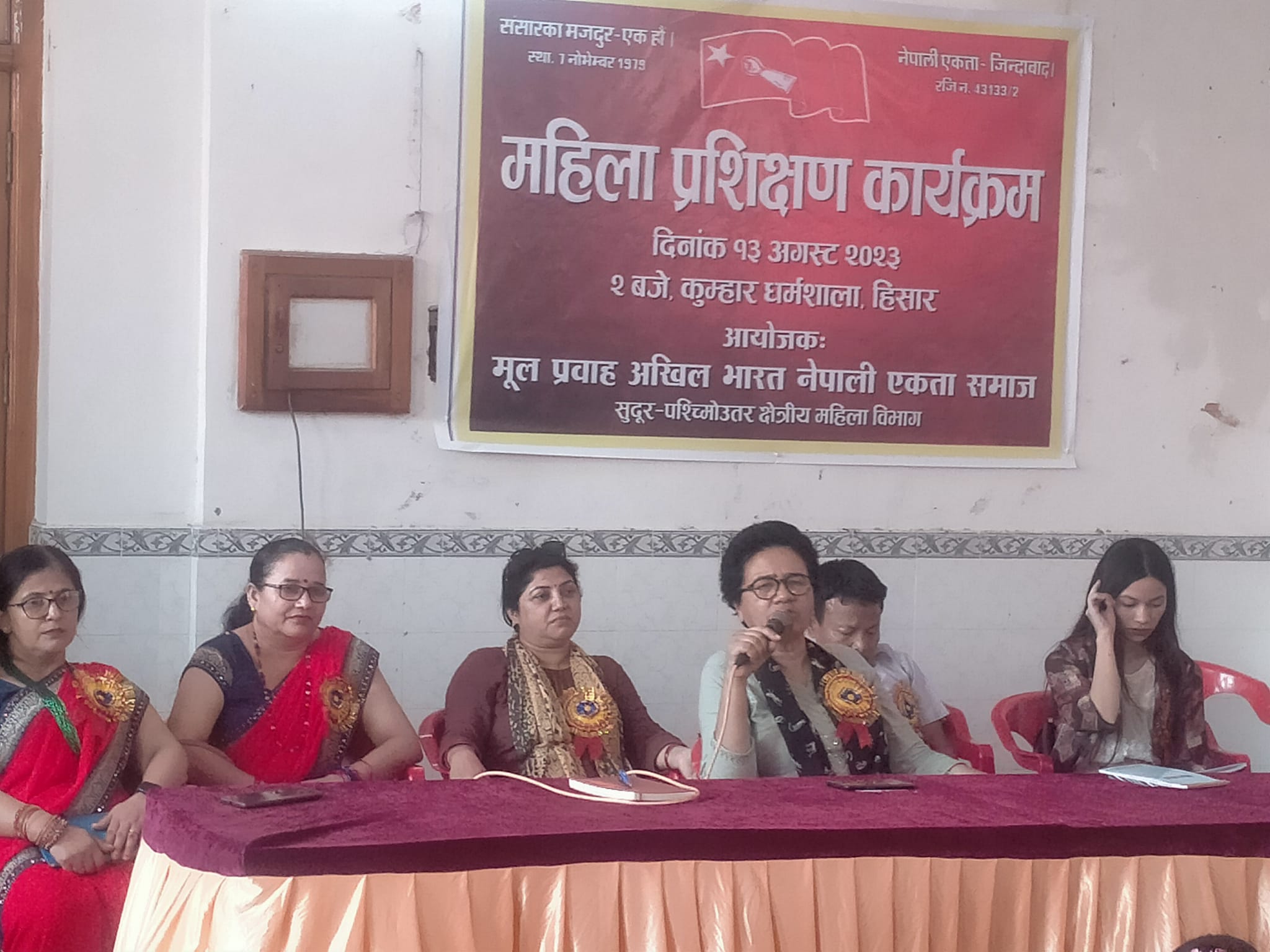 मूल प्रवाह अखिल भारत नेपाली एकता समाज सुदूर पश्चिमोत्तर क्षेत्रीय समितीद्वारा सञ्चालित महिला विभागको आयोजनामा हिसारमा सम्पन्न प्रशिक्षण कार्यक्रमलाई प्रमुख अतिथिको आशनबाट सम्बोधन गर्दै नेत्री जिसीले सो कुरा बताउनुभएको हो ।