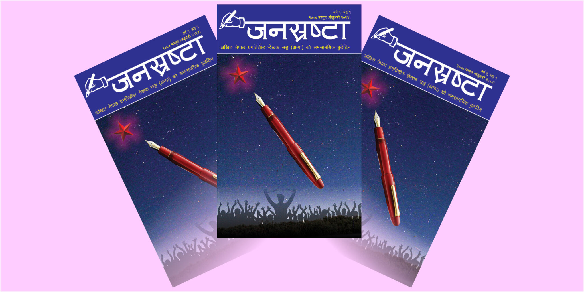 काठमाडौँ । अखिल नेपाल प्रगतिशील लेखक सङ्घ (अन्पा) को समसामयिक प्रकाशन ‘जनस्रष्टा’ को पहिलो अङ्क विमोचन भएको छ ।