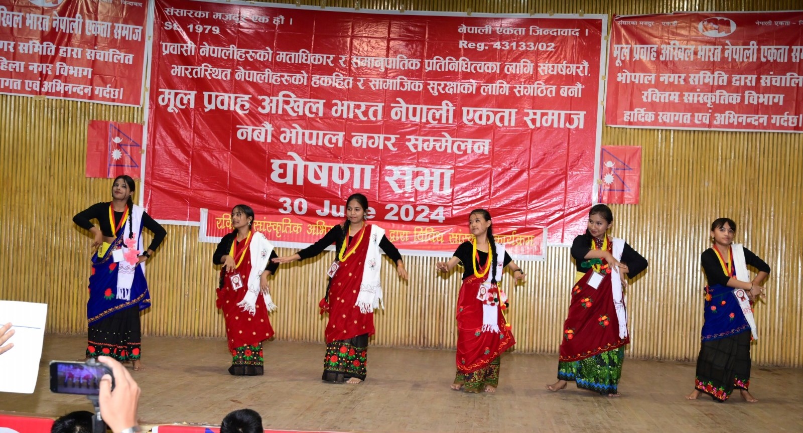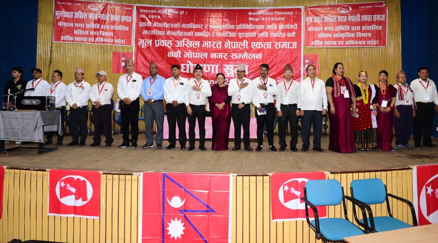 घोषणा बैठक कार्यक्रम ३० जुन २०२४ मा न्यूमार्केट समन्वय भवन, भोपालमा भएको थियो। कार्यक्रमको संयोजन श्रीमती सोनु थापा, अध्यक्ष मानबहादुर ओलीले गर्नुभएको थियो । कार्यक्रममा रा.ज.मो. नेता सुरेस थापाको प्रमुख आतित्थ्यता रहेको थियो । मूल प्रवाहका महासचिव प्रेम पौडेल, केन्द्रीय समिति सदस्य भीमबहादुर थापा, तालबहादुर खड्का, नारायण बहादुर सापकोटा, मध्य उत्तर भारत क्षेत्रीय समिति सदस्य लक्ष्मी रोका मगर, नेपाली एकता मञ्च भारतका राधा अर्याल, प्रवासी संघ भारतका तर्फबाट सुरज टुइटेल, जनसंपर्क समिति भारतका दामोदर बेलबासे, समाजका अध्यक्ष पशुपतिनाथ, नेपाली समाजका लोकमणि घिमिरे, जनकल्याण समिति भारतका तर्फबाट जीवन नारायण घिमिरे, चेम्बर अफ कमर्शका तर्फबाट गणेश पाण्डेले नवनिर्वाचित समितिलाई बधाई तथा शुभकामना दिंदै सम्मेलन सफलताको शुभकामना दिएका थिए ।