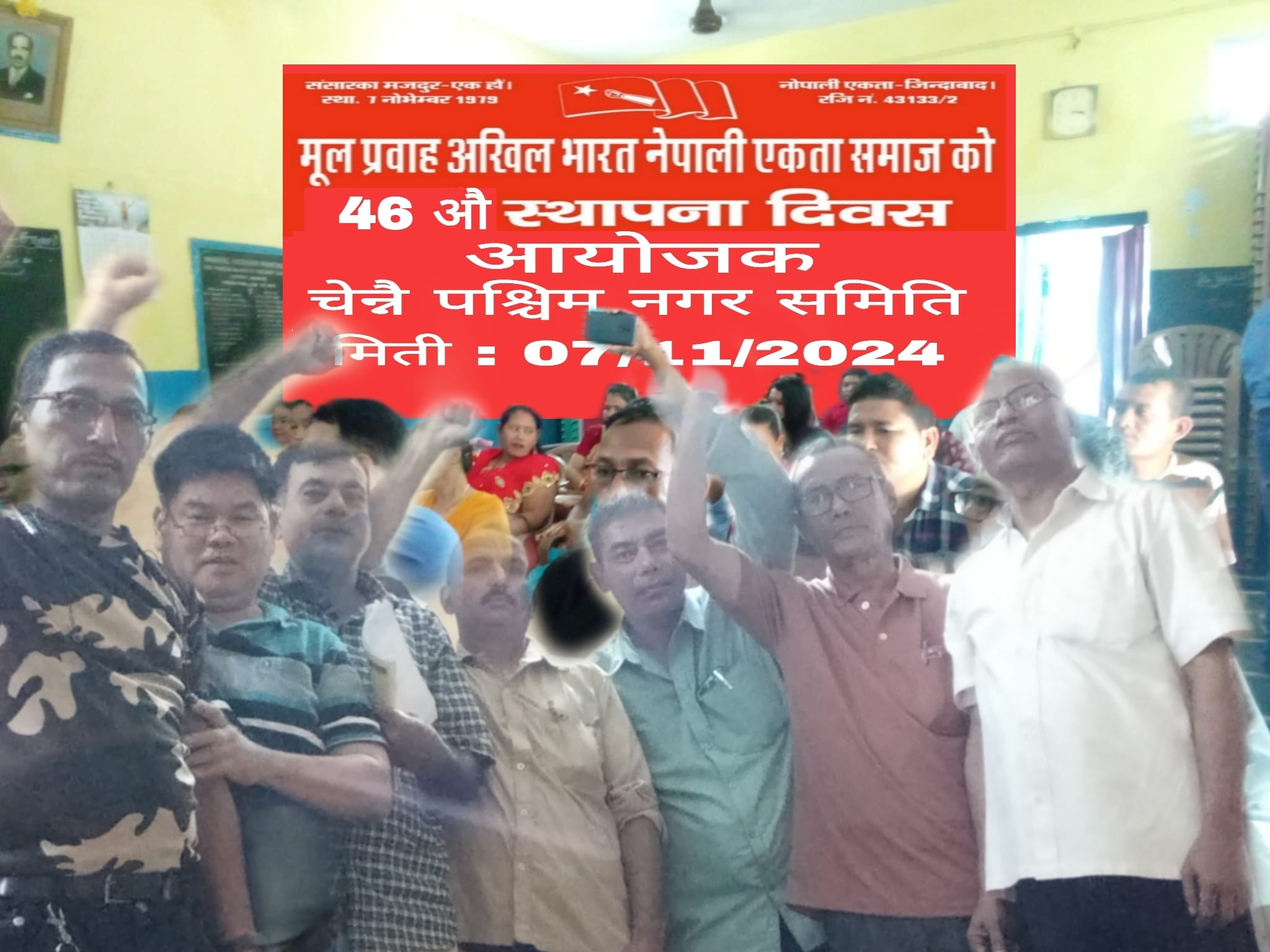 चेन्नई पश्चिम । मूल प्रवाह अखिल भारत नेपाली एकता समाज चेन्नई पश्चिम नगर समितिको आयोजनामा ४६औं स्थापना दिवस मूल प्रवाह पश्चिम नगर समितिका सदस्य दुर्गा बहादुर रायमाझीको अध्यक्षता, नगर समितिका सचिव किशोर शर्माको सञ्चालन तथा मूल प्रवाह केन्द्रीय समितिका कोषाध्यक्ष मदन शर्माको प्रमुख आतिथ्यतामा सम्पन्न भयो ।