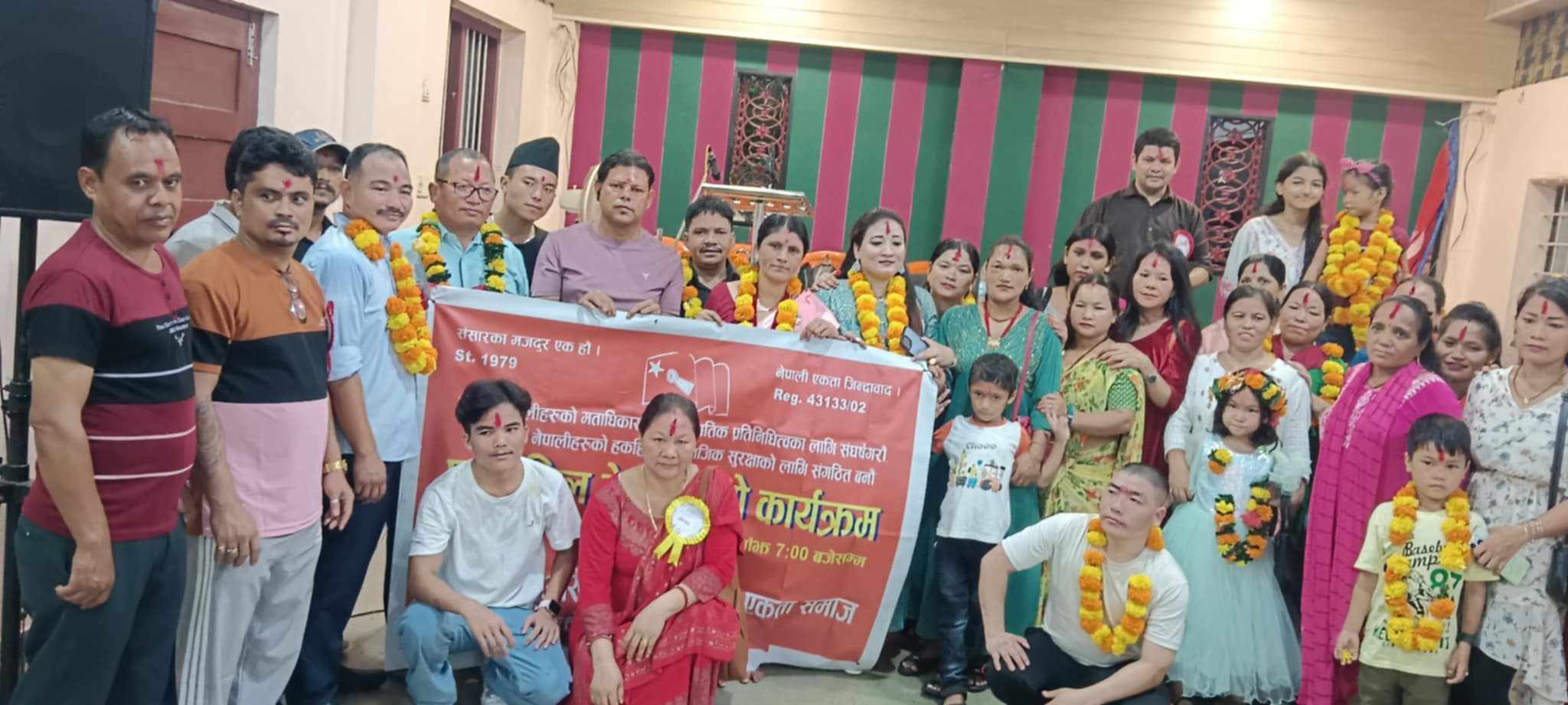 कार्यक्रमको अध्यक्षता मूल प्रवाह अखिल भारत नेपाली एकता समाज केन्द्रीय परिषद सदस्य जानकी विसीले गर्नुभएको थियो भने सञ्चालन जनक विसीले गर्नुभएको थियो । सर्बप्रथम ज्ञात अज्ञात शहिदहरुको एक मिनेट मौनधारण पछि उपस्थिति सम्पुर्ण जनमानसलाई नगर सदस्य मेघराज विसीले स्वागत गर्नुभएको थियो । एरिया सदस्य तिर्थराज घमले सुभकामना मन्तब्य दिनु भएको थियो ।