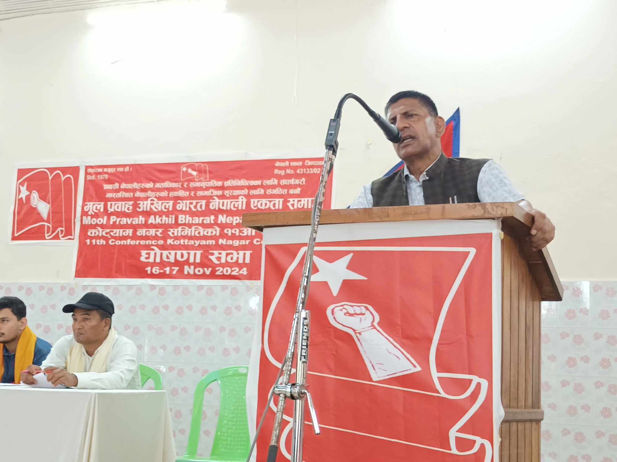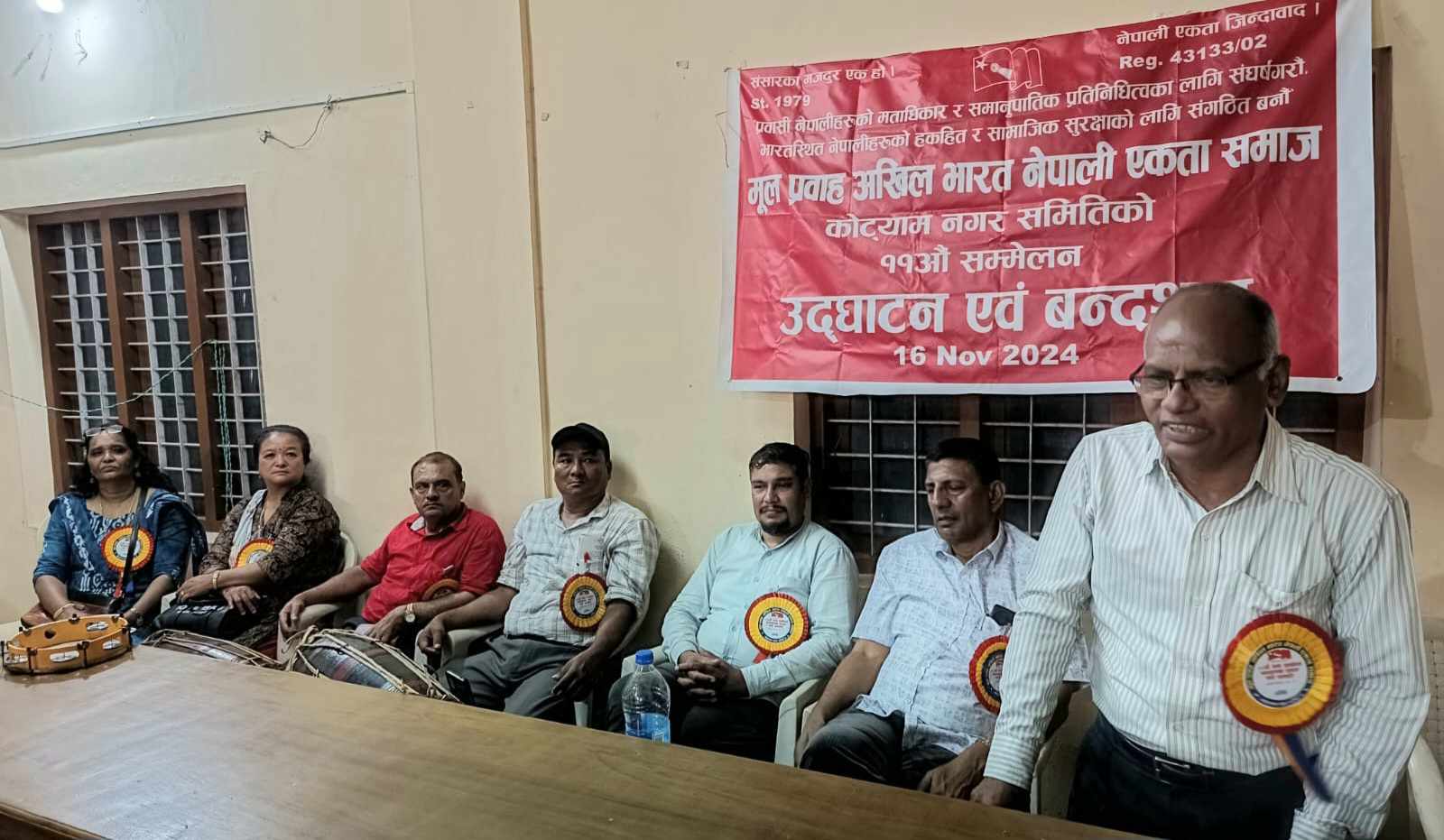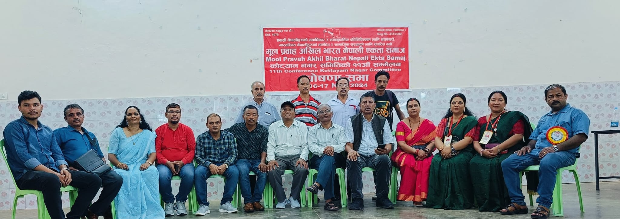 कोट्टयाम १६–१७ नोभेम्बर । मूल प्रवाह अखिल भारत नेपाली एकता समाज दक्षिण भारत क्षेत्रीय समिति अन्तर्गत पर्ने कोट्टयाम नगर समितिको ११औं सम्मेलन सम्पन्न भएको छ । सम्मेलनको उद्घाटन प्रमुख अतिथि महासचिव प्रेम पौडेलले दीप प्रज्वलित गरि तालिको कताल ध्वनीको साथमा गर्नुभएको हो।