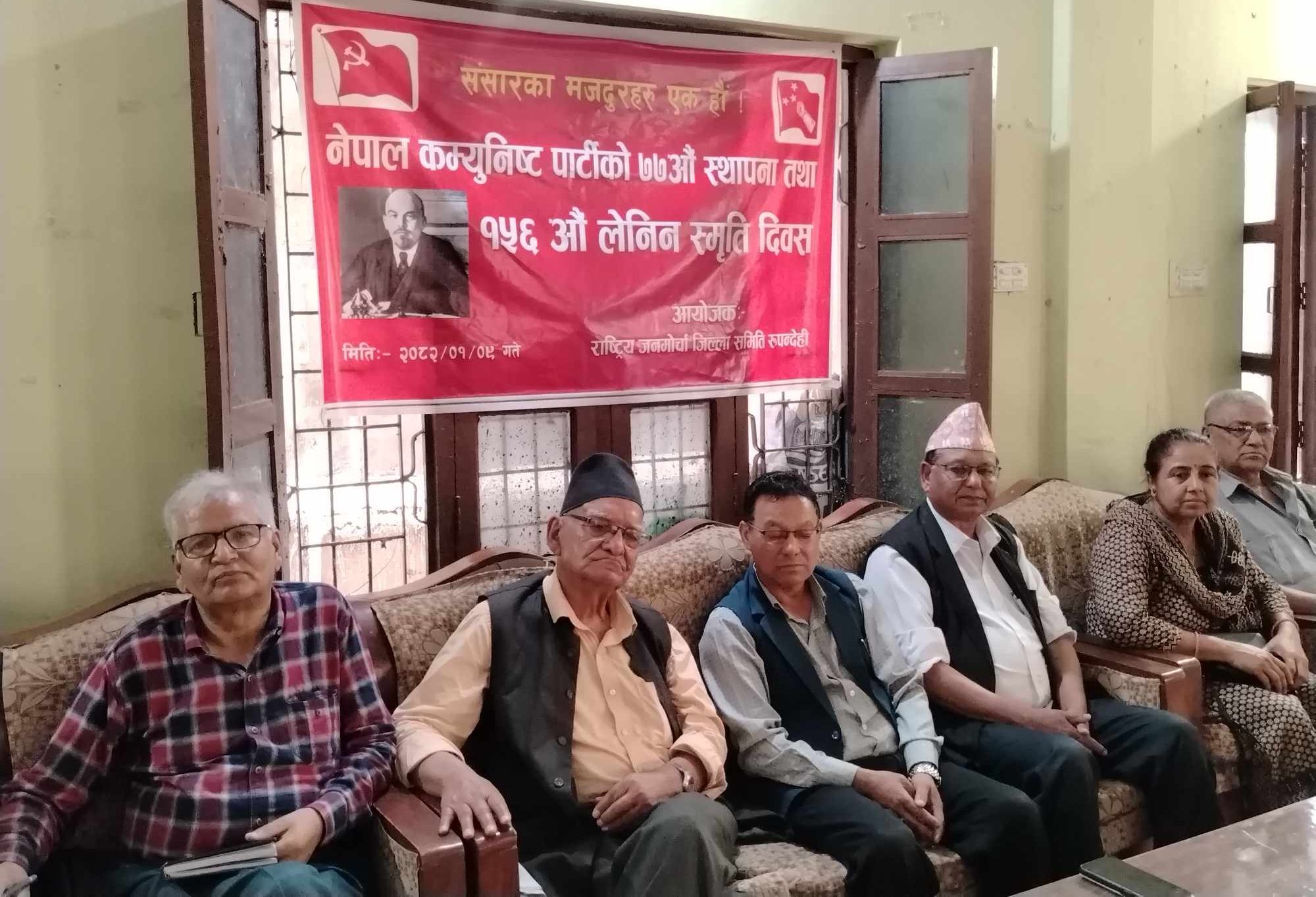 रुपन्देही बुटवल, बैशाख ९ । नेपाल कम्युनिष्ट पार्टिको ७७औं स्थापना तथा १५६औं लेनिन स्मृति दिवसको अवसरमा राजमो बुटवलले आयोजना गरेको कार्यक्रममा बोल्दै राष्ट्रिय जनमोर्चाका अध्यक्ष चित्र बहादुर केसीले साम्राज्यवादले लेनिनवादी संगठान्तमक सिद्धान्त धोस्त पर्न लागिपरेको र उ सफल समेत भएको बताउनुभयो ।