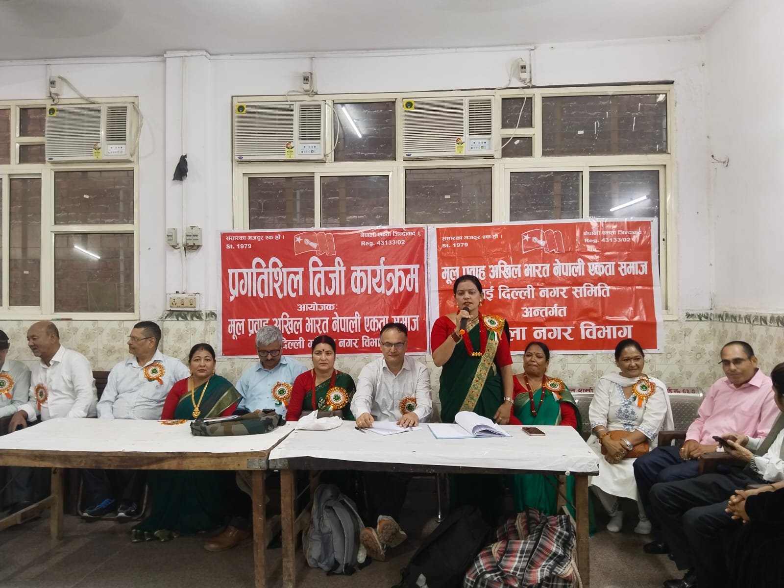 वहाॅ सो तिजको शुभकामना दिदै अगाडी भन्नु भयो “तिजको नेपाली समाजमा प्रगतिशिल महत्व छ । पुरूषप्रधान समाजमा महिला अधिकारको लागि विद्रोहको प्रतिक हो । अहिले पनि नेपाली समाजमा लैगिक विभेद कायमै छ, महिलाहरू लैगिक हिंसाको सिकार भएकाछन्, छोरा छारीमा भेदभाव हुने गरेको छ, त्यसको साथै देशमा अराजकता, भ्रष्टाचार, वैदेशिक पलायल ठुलो समस्या बन्दै गई रहेको छ । जनताको आन्दोलनको बलमा स्थापित हक-अधिकार, गणतन्त्रलाई पुनरउस्थानवादीहरूले धर्मको आडमा समाप्त पार्ने कसरथ गरेका राष्ट्र विरोधी वयानबाजी गर्दा पनि नेपाली जनताले कडा प्रतिवाद गर्द नसक्नु शर्मनाक कुरा हो । नेपालीहरूले राजनैतिक विषयलाई गौण बनाएको छौ । तर सहि राजनैतिक दिशा बिना सामाजिक परिवर्तन सम्भव छैन । त्यसैले संगठनमात्र भनेर सहि राजनैतिक चेतना सहितको संगठन आवश्यक हुन्छ । त्यसैले भारत स्थित नेपालीहरूका समस्या समाधन एवं राष्ट्रियता, जनतन्त्र जनजिवीकाको लागि सहि संगठनमा आवद्ध भई संघर्ष गर्नको विल्कप छैन ।”