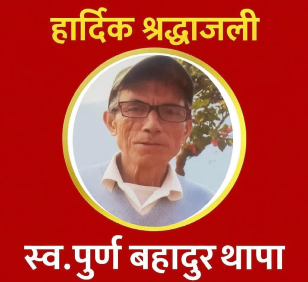 उहाँका पिता पुर्ण बहादुर थापाको 2082 साउन 27 मा 70 वर्षको उमेरमा प्युठान जिल्ला, झिमरुक गाउँपालिका ६, निन्यूखर्कमा असामयिक निधन भएको खबरले नगर समिति भिवाडी गहिरो दुरूख व्यक्त गर्दछ।