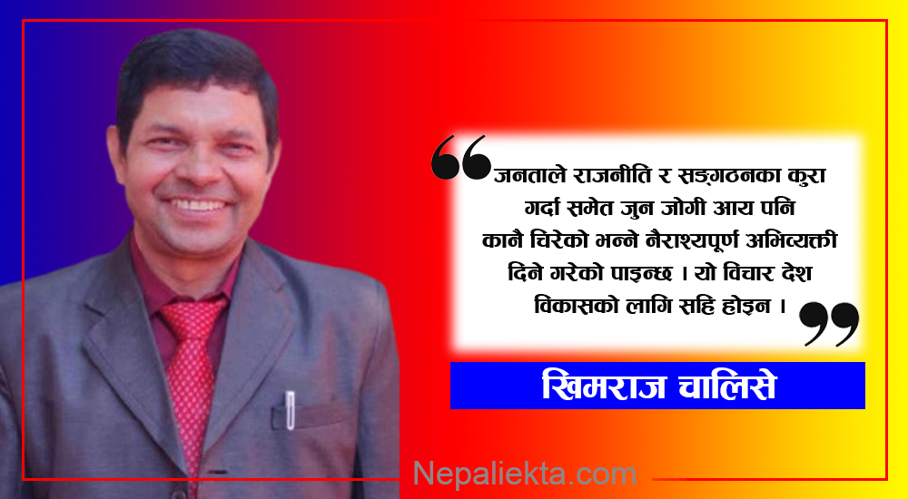 वर्तमान सामाजिक संरचनामा धेरै मानिसहरू तथा राजनैतिक कार्यकर्ताहरूको सोच व्यक्तिगत फाइदा अर्थात निजी स्वार्थमा नै देखिन्छ । त्यही कारण हो कि जनताले राजनीति र सङ्गठनका कुरा गर्दा समेत जुन जोगी आय पनि कानै चिरेको भन्ने नैराश्यपूर्ण अभिव्यक्ती दिने गरेको पाइन्छ । यो विचार देश विकासको लागि सहि होइन । यस्ताप्रकारका विचारले कैयन दुष्प्रभाव ल्याउँछन् । जबकी सामुहिक हितको बारेमा सोच्ने व्यक्ति व्यक्तिगत रुपमा पनि स्थापित हुन्छ ।