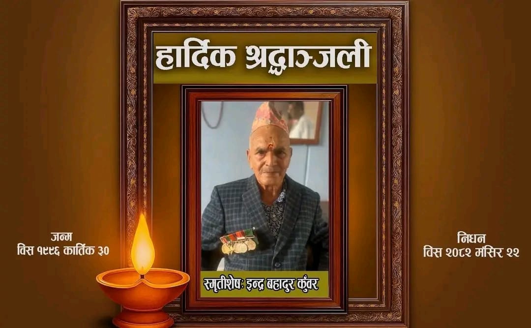 मूल प्रवाह अखिल भारत नेपाली ,कता समाज केन्द्रिय समिति सदस्य तथा पश्चिमोत्तर क्षेत्रीय सचिव शिव केसी पितृशोकमा पर्नु भएको छ । वहाँको बुवा इन्द्रबहादुर कुवरको 86 वर्षको उमेरमा आज मंसिर 22 गते आफ्नो निवास स्थानबाणगंगा नपा वार्ड नं- 9 जिनुवा कपिलबस्तुमा दुःखद निधन भएको छ । आजै दिंउसो बाणगंगा नदिको लक्षमण घाटमा वहाँका दाहसंस्कार गरिएको छ । तिन भाई छोराहरू चन्द्र बहादुर कुवर, शिव बहादुर कुवर केसी र खुम बहादुर कुवर चार बहिनी छोरीहरू जमुना खत्री, माया केसी, सरस्वती थापा र बिष्णुमाया टण्डन चार नाती र तिन नातिनीहरू छन् ।\