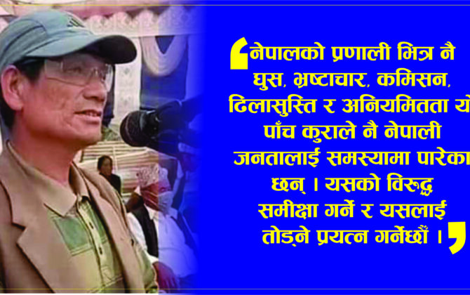 पुरा पढ्नुहोसबुटवल । राष्ट्रिय जनमोर्चाका कार्यकारी अध्यक्ष रश्मीराज नेपालीले विदेशीले दिएको अनुदानबाट देशको विकास नहुने बताउनुभएको छ । शनिबार बुटवलमा पाँचदलीय गठबन्धनले आयोजना गरेको चुनावी सभामा बोल्दै नेता नेपालीले विदेशी अनुदानले विकास हुने भए देशमा खर्बौं...